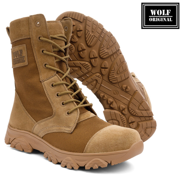 Тактичні дихаючі літні берці койот для військових. Літні берці з міцною підошвою. Wolf original